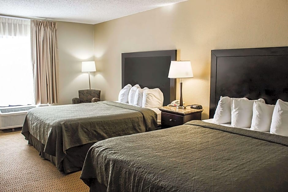 This room features a flat-screen TV with cable channels. A refrigerator, coffee maker, and microwave are provided as well.